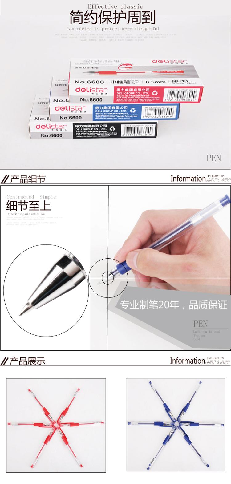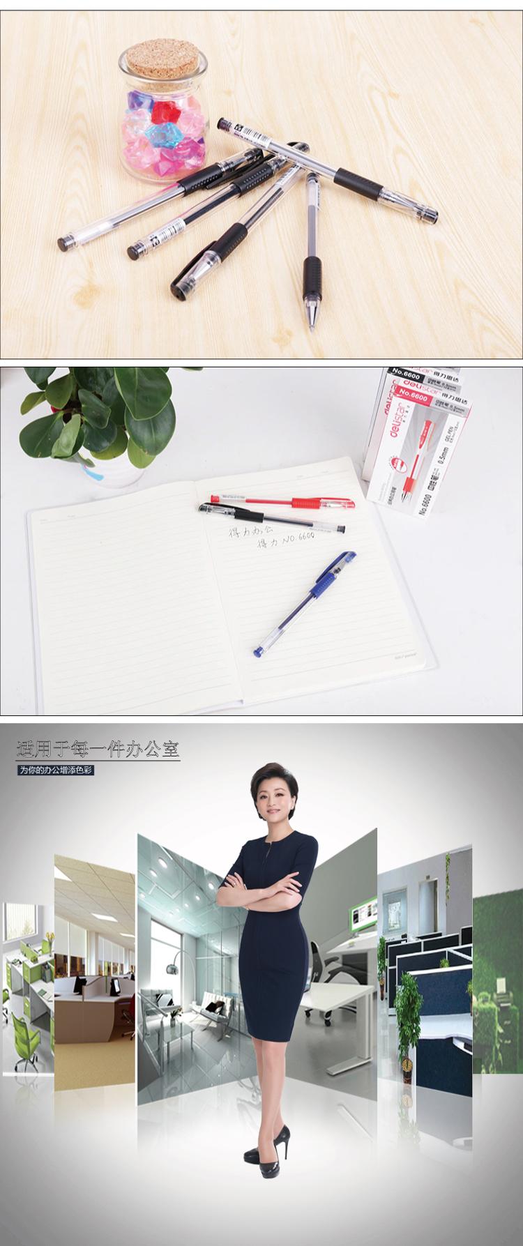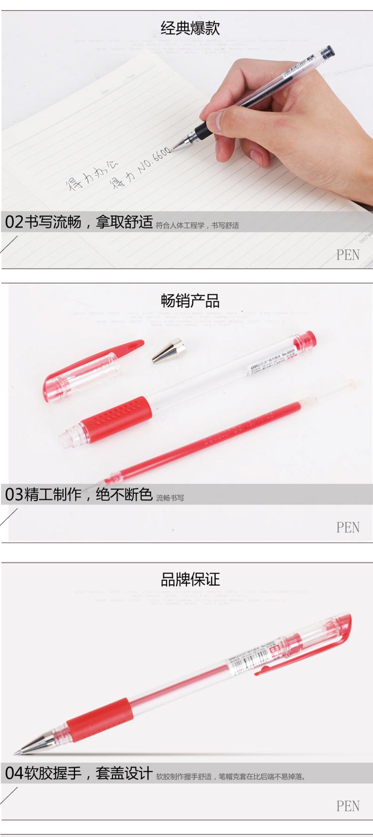 得力(deli)6600 经济实用型中性笔(黑) 0.5mm 12只装