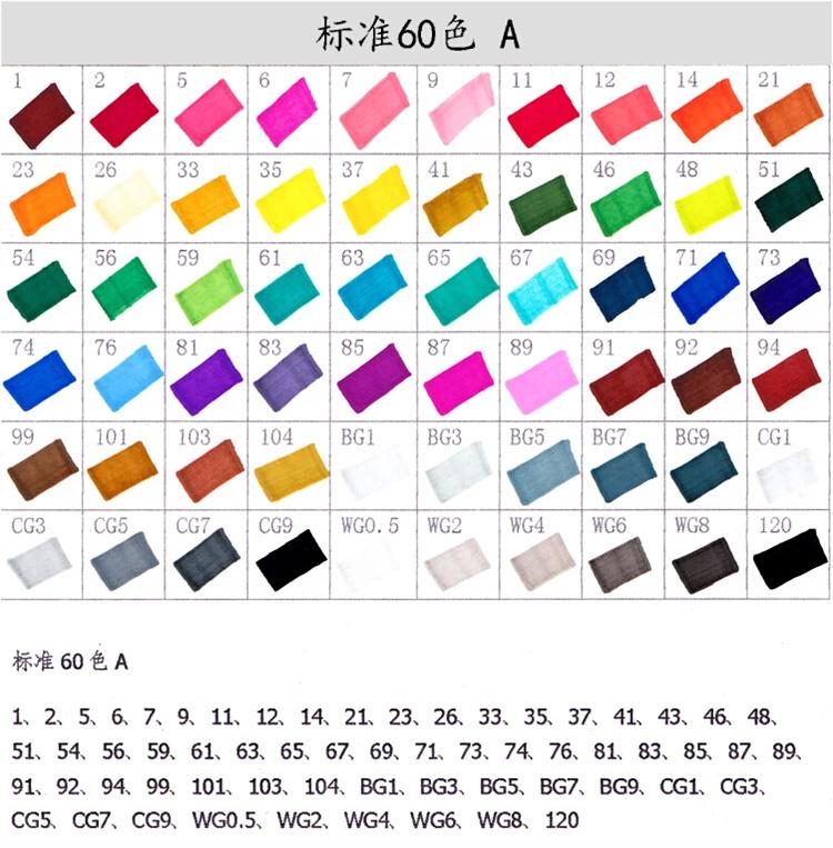 五代双头酒精性 油性马克笔套装 手绘笔 海报笔 麦克笔 送笔袋 动漫设计60色