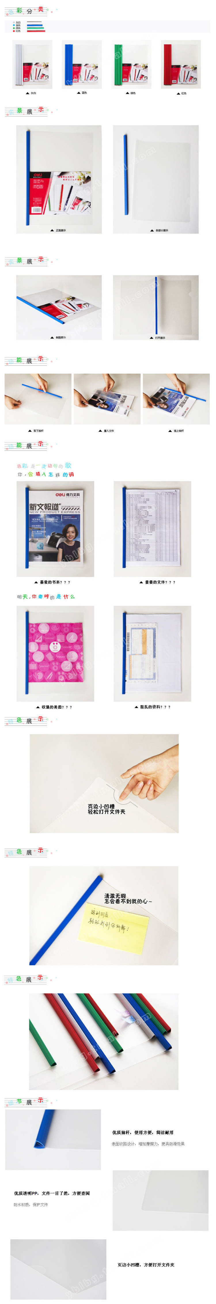 得力5531 A4透明抽杆报告夹/文件夹/拉杆夹 20个装