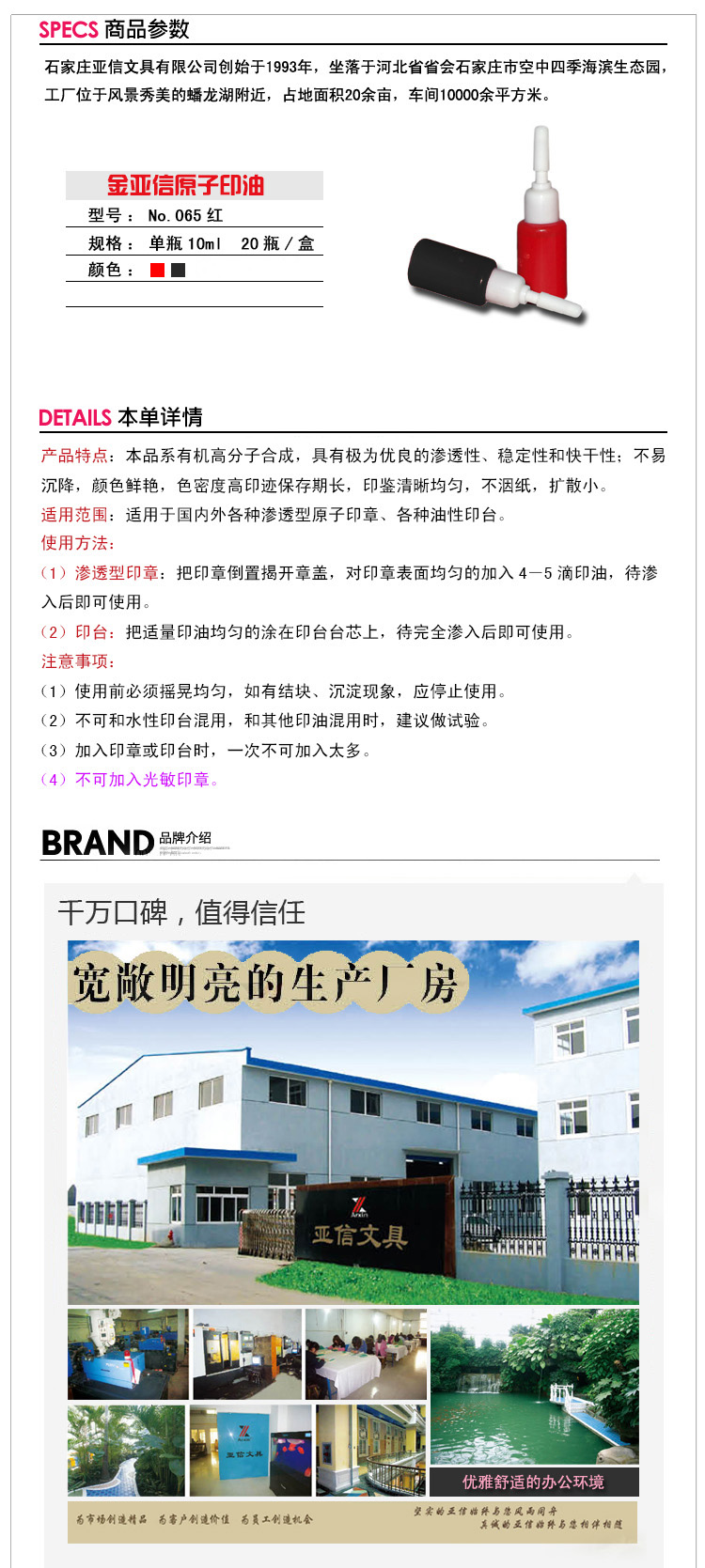 亚信 065 原子印油 20个装