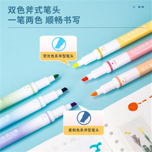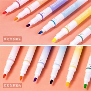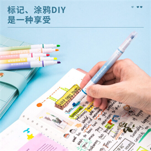 得力荧光笔双头荧光笔套装多彩双头荧光笔标记笔学生用粗划重点用儿童涂鸦6色DIY手账文具笔记用彩色书写 双头多彩荧光笔6支装