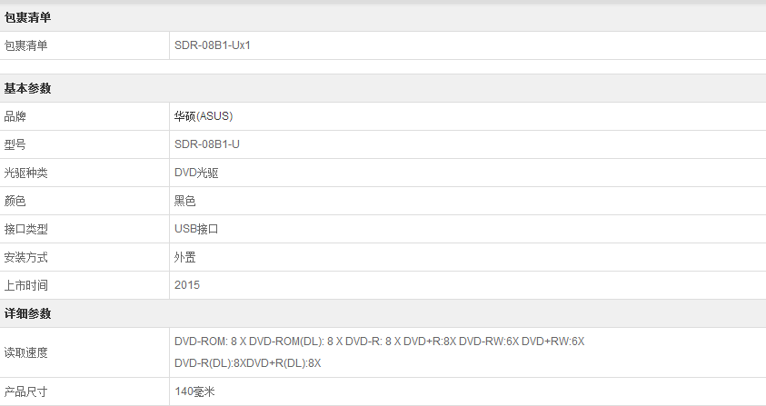 华硕(ASUS)SDR-08B1-U 外置超薄DVD光驱