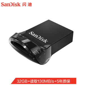 闪迪(SanDisk)32GB USB3.1 U盘 CZ430酷豆 黑色 读速130MB/s 车载U盘 小身材 大容量