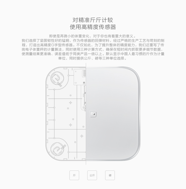 小米体重秤100克,喝杯水都可感知的精准高精度压力传感器 | 手机管理全家健康