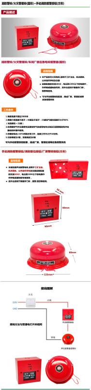 商品名称:消防警铃/火灾报警铃(圆形)+手动消防报警按钮(方形)套装