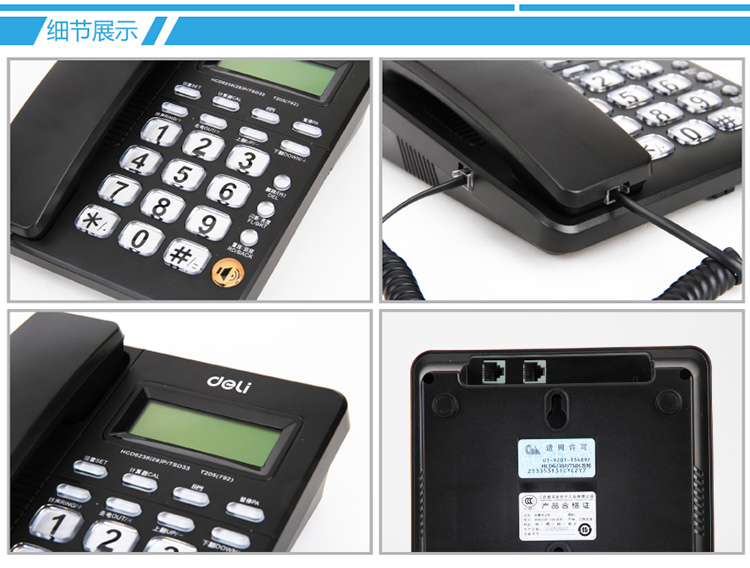 高保真语音,通话更清晰。各细节图展示,电话机做工精细。