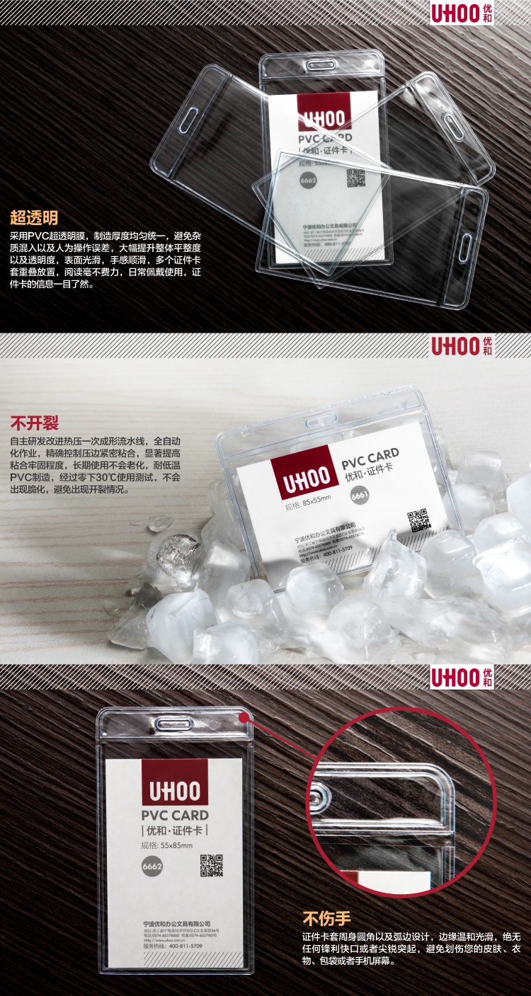 优和(UHOO) 6662 软质PVC证件卡套 高透明 竖式 48个/盒 证件套 证件卡套 竖版