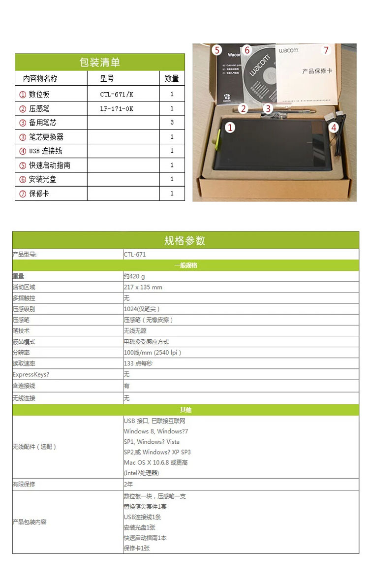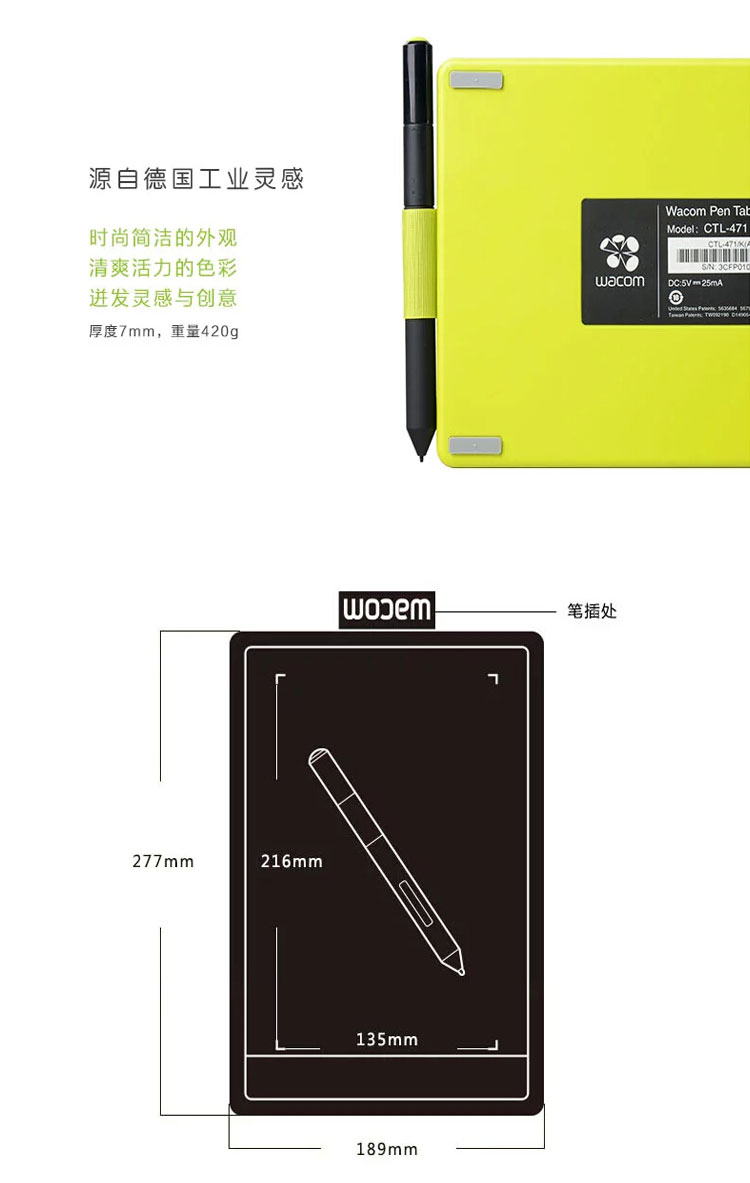 和冠 (Wacom) 手写板Bamboo Pen Medium CTL-671/K0-F绘画板