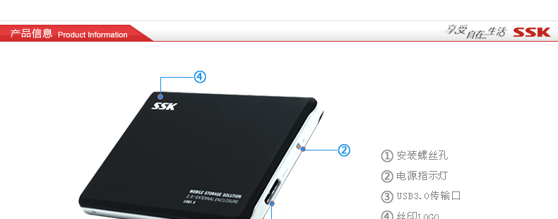 SSK飚王 HE-V300 2.5寸移动硬盘盒 金属USB3.0 sata串口笔记本硬盘盒